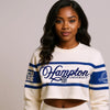 Elevate your HBCU wardrobe with the *CollegiateLuxe Chenille Raw Edge Crop Sweatshirt*! Crafted for the fashion-forward and school-spirited, this stylish crop sweatshirt is a must-have for all season.